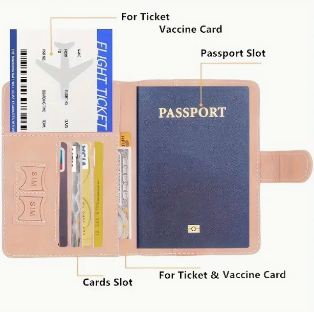 Funda para pasaporte con protector, ranuras para tarjetas, ranuras para tarjetas SIM y bloqueo RFID